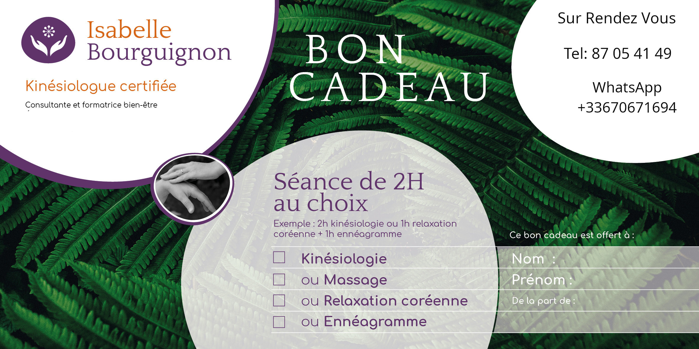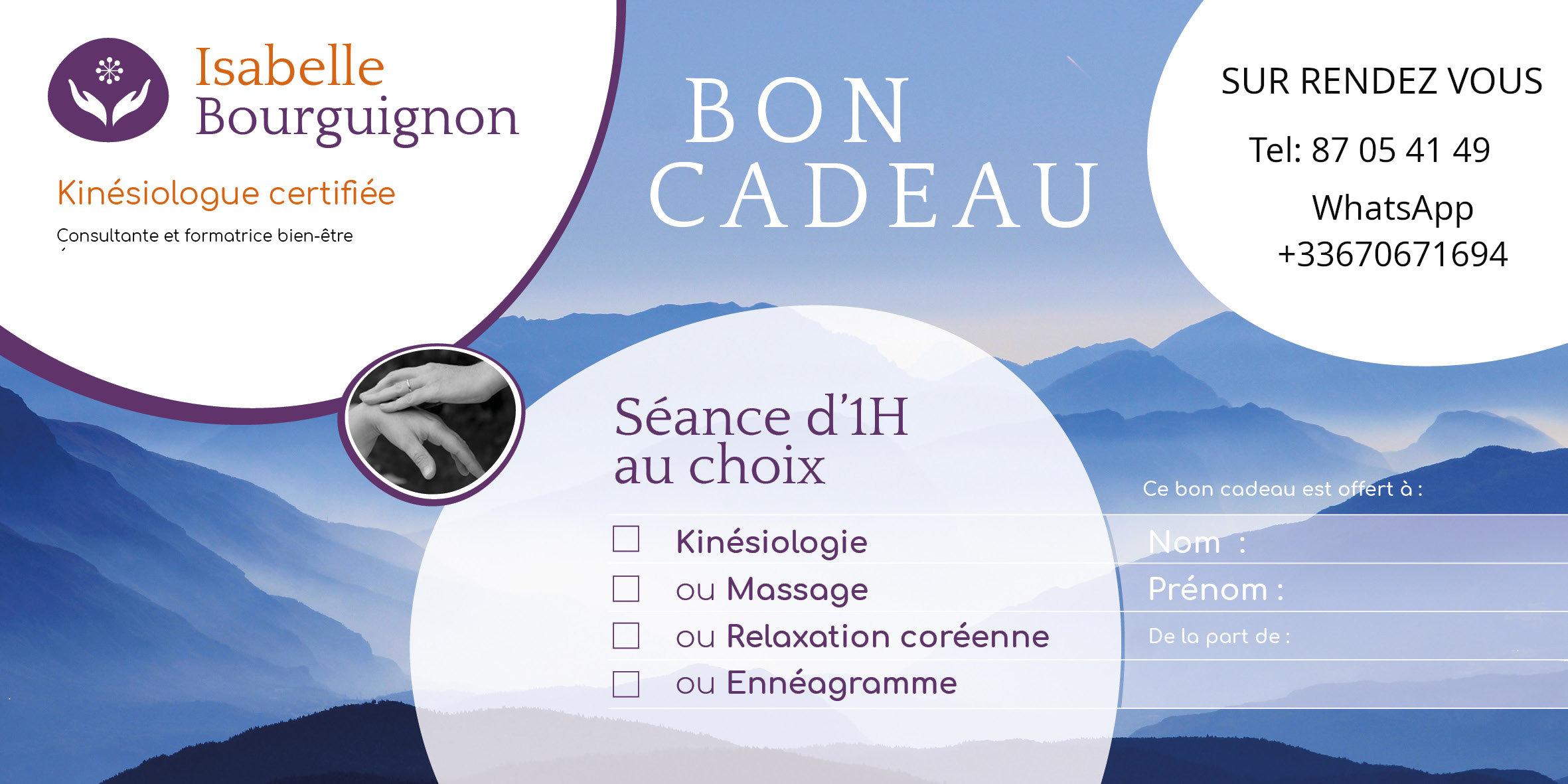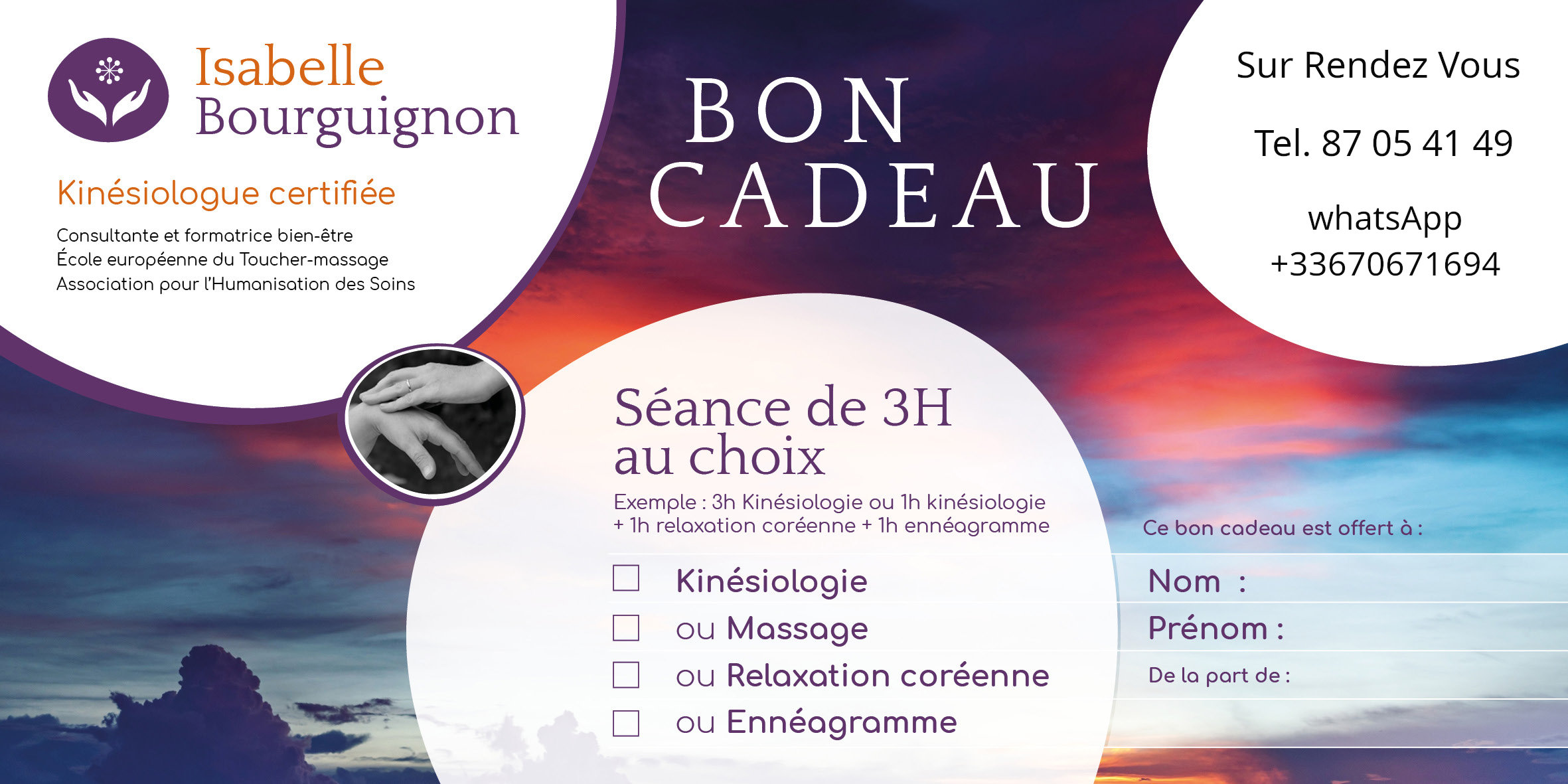 Offrir 1 , 2 ou 3 heures de prestations (énnéagramme kinésiologie ou bye bye allergies) ?
